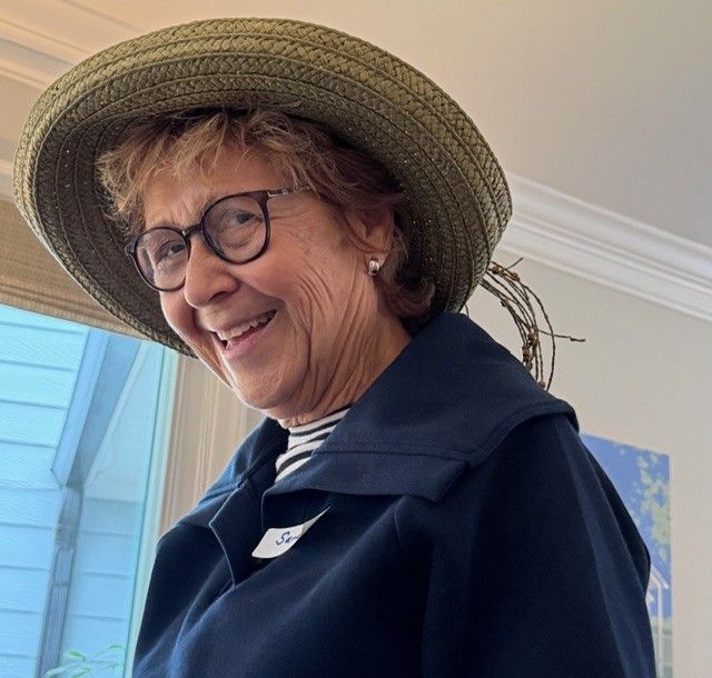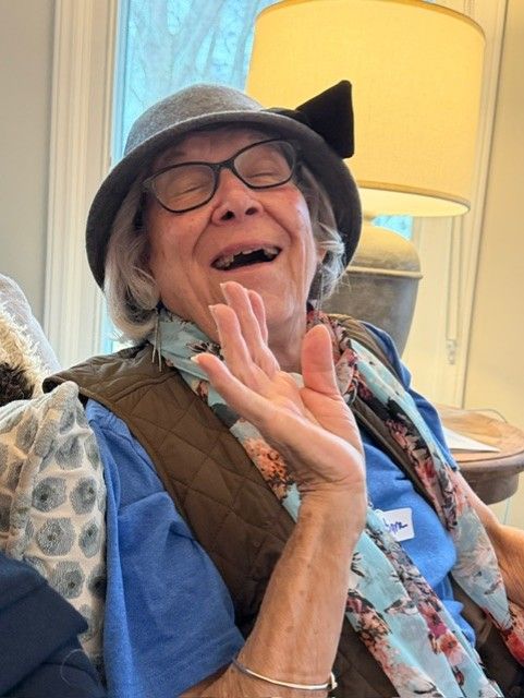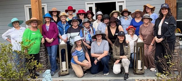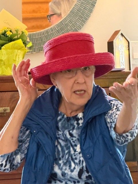 "Friends honor a member by wearing hats at a service"